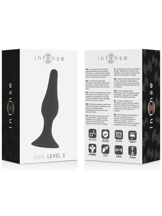 Intensifica tu placer con Intese toys, un concepto clasico que no todos consiguen hacer. Si te gusta el sexo anal con Anal Level 3 es perfecto por muchos motivos. Su punta conica avanza a su parte ancha inferior estimulando la zona anal y dilatando suavemente sintiendo placer gracias a la silicona suave y sedosa medica que permite un avanze superior. Elegante fuerte e imponente es Anal Level 3 que te proporciona la sensación que necesitas. Una sola pieza compacta y resistente hará tus juegos anales un momento perfecto.