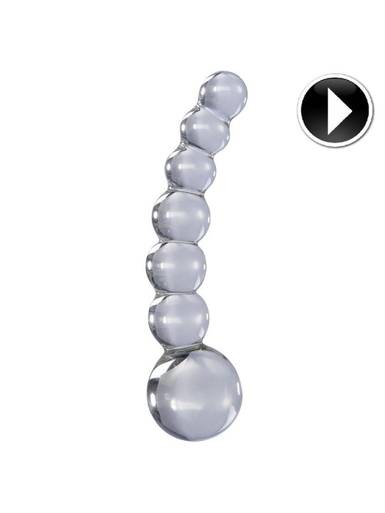 Este elegante varita de cristal cuenta con un eje de cuentas graduado, lo que le permite aliviar cómodamente en su tamaño.