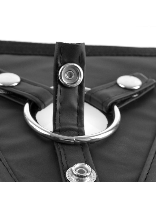 Diseñado para soportar juegos fetichistas extremos, este arnés cuenta con cintas ajustables y una anilla de silicona elástica en la junta tórica.
