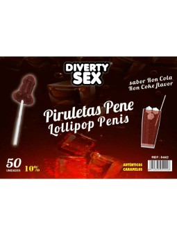 DIABLO GOLOSO - 50 PIRULETAS PENE RON COLA 10% ALCOHOL