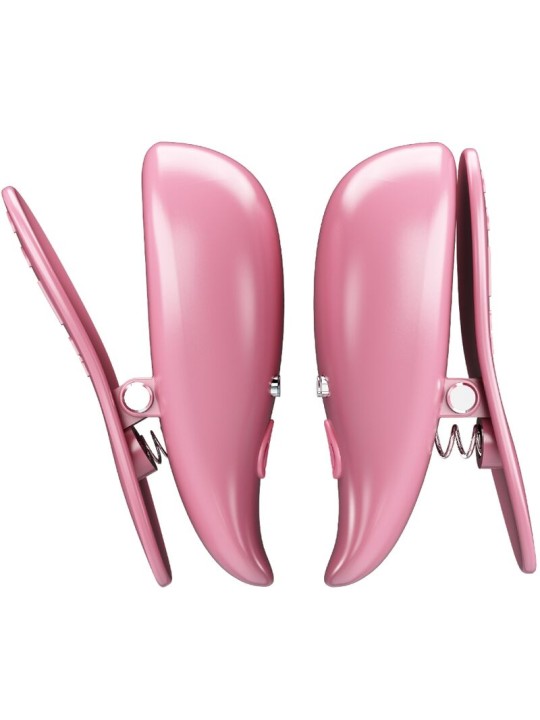 Estas lindas pinzas para pezones de color rosa agregan versatilidad divertida a toda tu diversión en el dormitorio con su diseño liviano e inalámbrico que se adhiere fácilmente con una superficie suave. ¡Cada pinza tiene 10 modos de vibración para explorar, que tú o tu pareja pueden controlar por separado para un placer personalizado!
