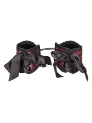 Abrígate y entrégate con las esposas Scandal Corset. Inspiradas en los sensuales diseños de corsés, estas esposas de brocado rojo y negro ofrecen sujeción para muñecas o tobillos con un impresionante estilo de cordones. Cada par incluye una cadena resistente de 20 cm y cierres universales, lo que permite un juego versátil: desde las manos atadas a la espalda hasta los tobillos atados bajo las sábanas. El forro de felpa garantiza la comodidad, mientras que los cierres de velcro ajustables proporcionan un ajuste seguro para todo tipo de cuerpos. Tanto si eres un principiante curioso como un sumiso experimentado, estas elegantes ataduras invitan a la creatividad, la intimidad y el placer sin restricciones. Ríndete, cede el control y explora nuevas fantasías.