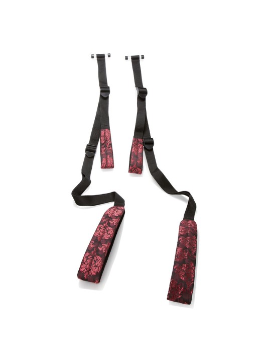 Alcanza nuevas cotas de pasión con el columpio Scandal para puertas. Este arnés universal se ajusta de forma segura a puertas estándar o extragrandes y cuenta con correas de brazos y muslos con doble acolchado, envueltas en una lujosa tela de diseño en rojo y negro. Deja que tu pareja tome el control mientras te balanceas en sus brazos, con el cuerpo elevado y en un ángulo perfecto para embestidas profundas y apasionadas. Las correas totalmente ajustables y los ganchos de barra seguros garantizan comodidad, sujeción y posiciones personalizables. Ya sea que quieras intensificar los preliminares o llevar la penetración a nuevas profundidades, el columpio Scandal® para puertas es la clave para un placer suspendido. Ajusta las correas para encontrar el ángulo de placer perfecto y disfruta de un éxtasis vibrante y sin peso con cada movimiento. Fácil de usar y fácil de liberar, es perfecto para parejas aventureras listas para explorar la magia del aire en cualquier momento y lugar.