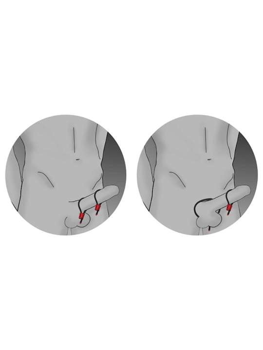 Los ElectraLoops de ElectraStim Prestige se pueden usar de diversas maneras. A continuación se muestran dos de las configuraciones más populares: ambos bucles en el pene o uno en el pene y otro alrededor del escroto.