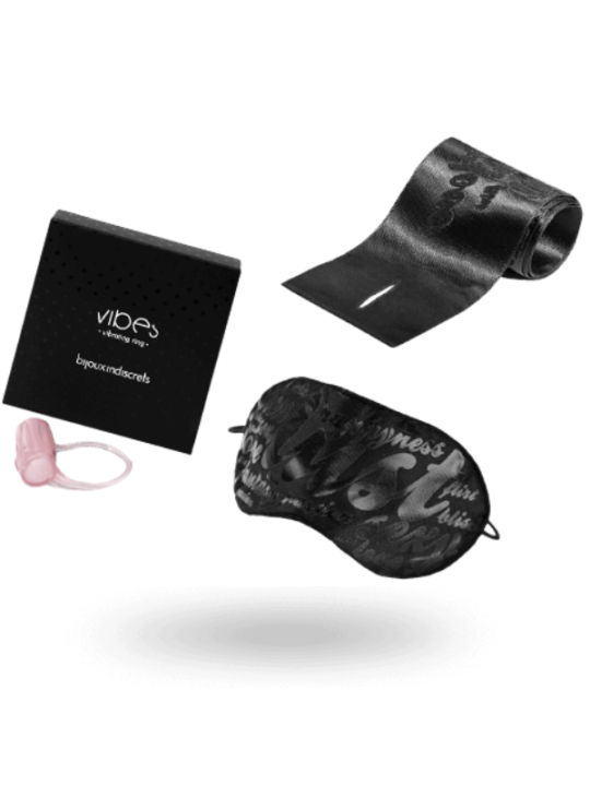 - Contenidos: Anillo vibrador Esposas de satén Antifaz satinado.