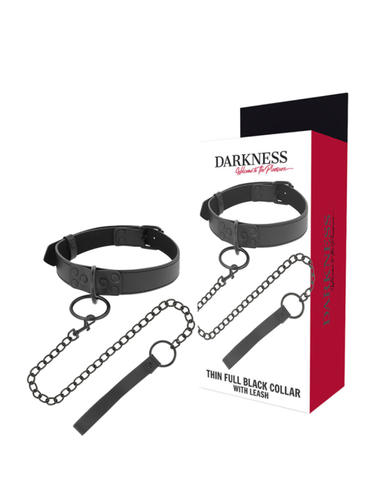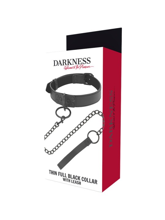 DARKNESS - THIN BLACK FULL COLLAR WITH LEASH