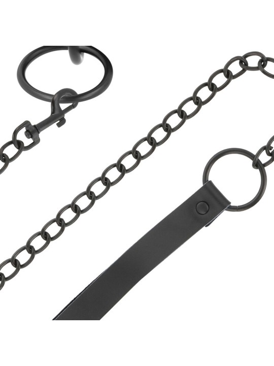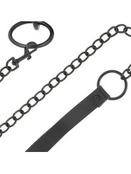 La fuerte cadena negra se anexa con un broche tipo langosta a un aro seguro que tiene el collar y se combina con un asa cómoda.