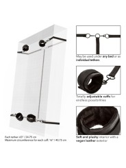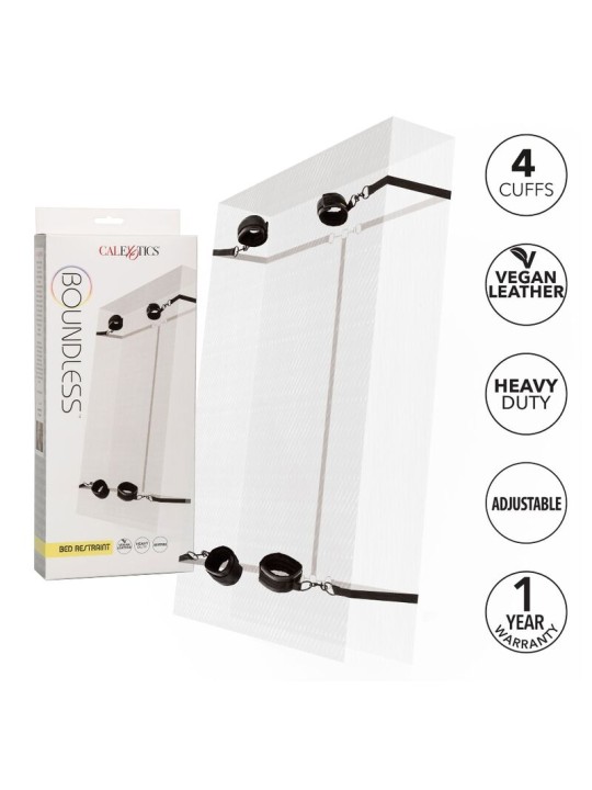Tenga cuidado: ¡el sistema de restricción de cama Boundless puede atar sus noches durante mucho tiempo! Este juguete para adultos viene con muñequeras y tobillos que ofrecen cierres estilo velcro y aplausos universales, lo que garantiza la máxima comodidad y sujeción.