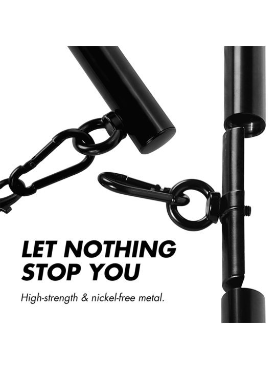 La barra separadora ajustable de FETISH SUBMISSIVE redefine la experiencia erótica con su diseño modular y versátil. Desmontable y fácil de transportar, esta barra se adapta a tus necesidades en cualquier lugar.