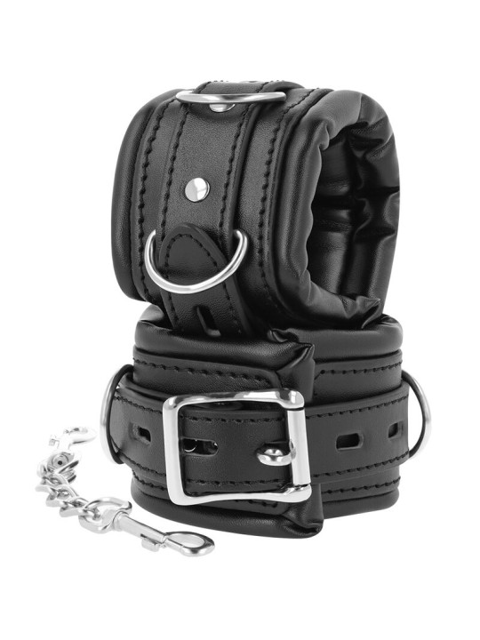 Estos puños tienen la estética elegante que anhelas. Doble capa y terminado con una hebilla de bloqueo, tu sumiso no podrá escapar. El interior acolchado garantiza que se mantendrán cómodos sin importar cuánto tiren o cuánto tiempo juegues.