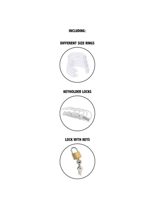 Su mecanismo de bloqueo seguro garantiza seguridad y discreción, mientras que el ajuste ajustable se adapta a la mayoría de los tamaños de pene. El diseño elegante permite un uso discreto bajo la ropa y durante las rutinas diarias. Fabricado en acrílico duradero, garantiza comodidad premium y uso durante todo el día.