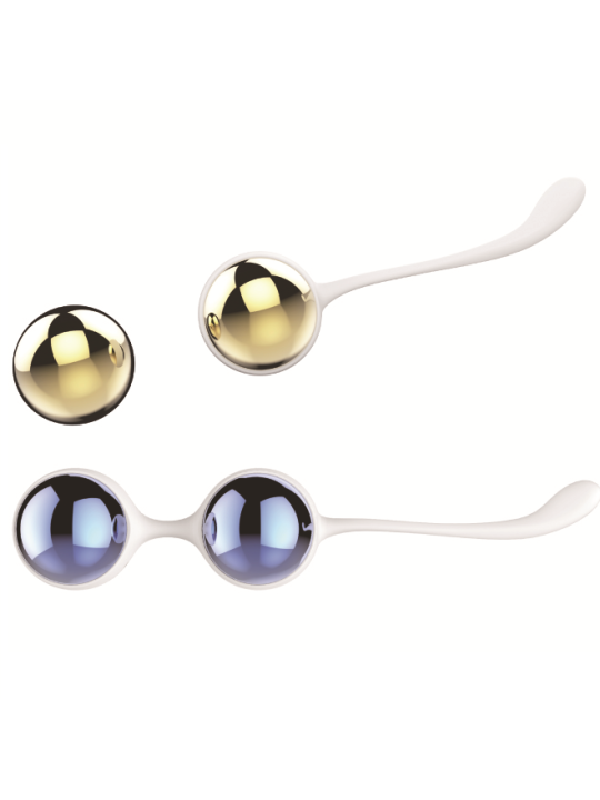 Cada set incluye cuatro bolas de 30 g. (Gold) y dos de 40 (Azul )g. que pueden combinarse gracias al conector de silicona para crear rutinas de ejercicios personalizadas.