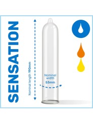 Los preservativos Pasante Tropical ofrecen tres sabores exóticos Mango (naranja - 48 unidades), Piña (amarillo - 48 unidades) y Coco (transparente - 48 unidades). Preservativos lisos, paralelos y con punta de tetina.