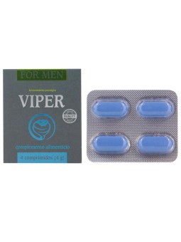 Viper es un complemento alimenticio para hombres, formulado con Vitaminas B1, B6, B8, B12 y Magnesio, que contribuyen al metabolismo energético, al buen funcionamiento del sistema nervioso y a la reducción del cansancio y la fatiga. Gracias a su acción, Viper ayuda a reforzar la energía física y mental, apoyando también la vitalidad sexual masculina.