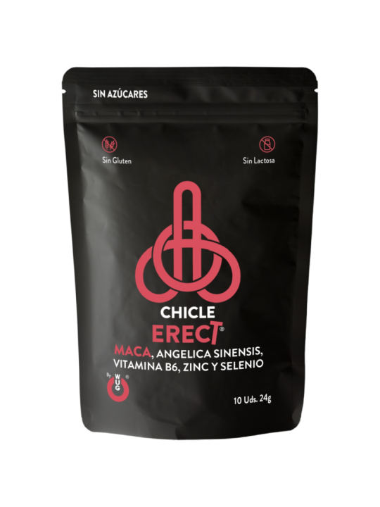 WUG ERECT es un complemento alimenticio en formato chicle funcional que combina extractos vegetales y nutrientes esenciales. Su fórmula innovadora permite una rápida liberación de los ingredientes activos a través de la mucosa bucal, sin necesidad de agua ni digestión.