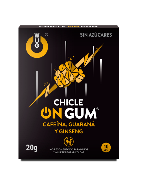 WUG CHICLE ON GUM es el complemento alimenticio en formato chicle pensado para quienes necesitan un extra de energía en cualquier momento. Gracias a su combinación de Cafeína, Ginseng y Guaraná, ayuda a activar cuerpo y mente, aportando vitalidad y mejorando la concentración en menos de 5 minutos.