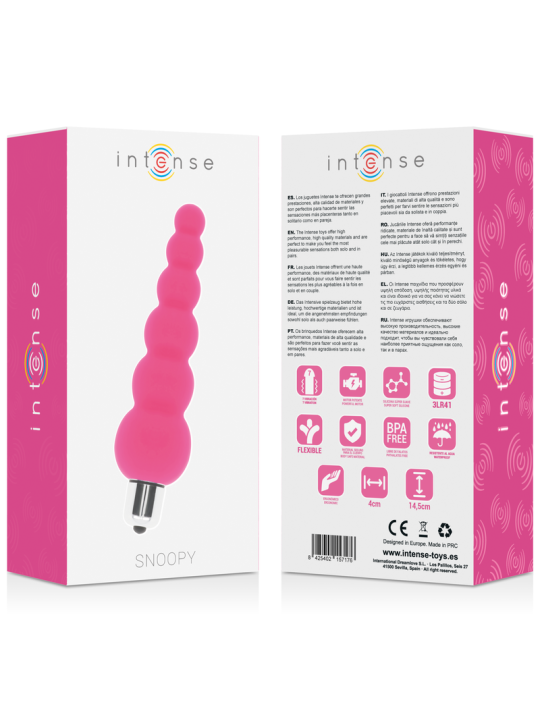 Intensifica tu placer con Intense toys, un concepto clásico que no todos consiguen hacer. Aumenta tu placer con Snoopy 100% silicona suave sedosa de grado médico es perfecto para la estimulación anal o vaginal ya que añade placer de menos a más y vibración de suave a fuerte. Ondas de placer aseguradas con Snoopy y sus 7 modos de vibración.