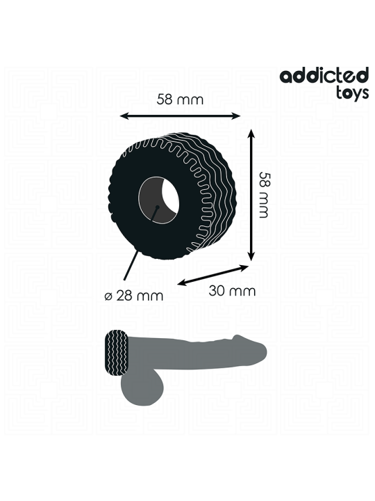 Con un ancho total de 58 mm, el anillo está diseñado para envolver el pene de manera segura, proporcionando un ajuste cómodo pero firme.