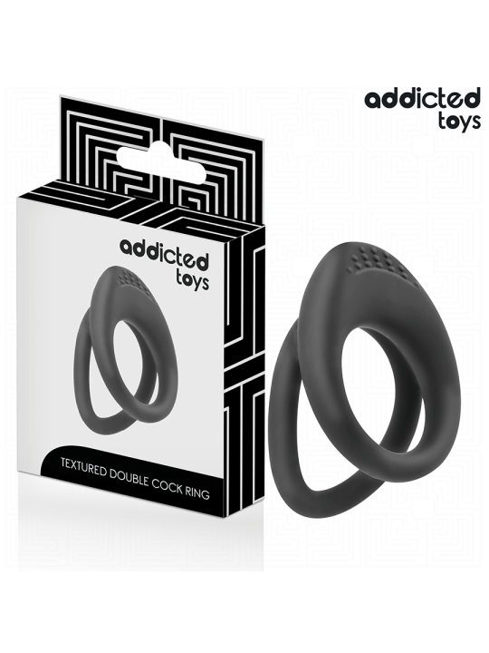 El anillo texturizado doble para el pene Addicted Toys está diseñado para mejorar la estimulación y proporcionar un ajuste firme, ayudando a prolongar la erección y aumentar la intensidad del placer. Su diseño con doble anillo permite una sujeción más eficiente, mientras que su superficie texturizada añade un extra de estimulación.