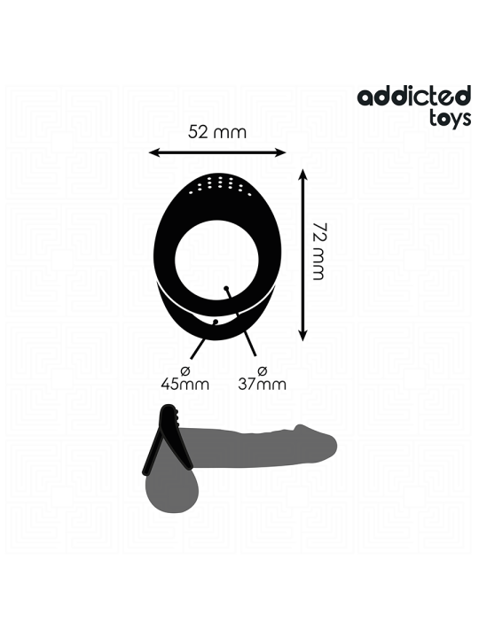 - Diámetro del anillo pequeño: 37 mm, ideal para sujetar el pene con firmeza.