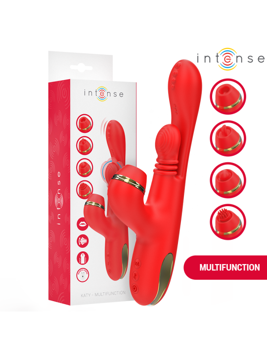 INTENSE - KATY MULTIFUNCTION CLITORIS STIMULATOR 4 INTERCHANGEABLE HEADS RED