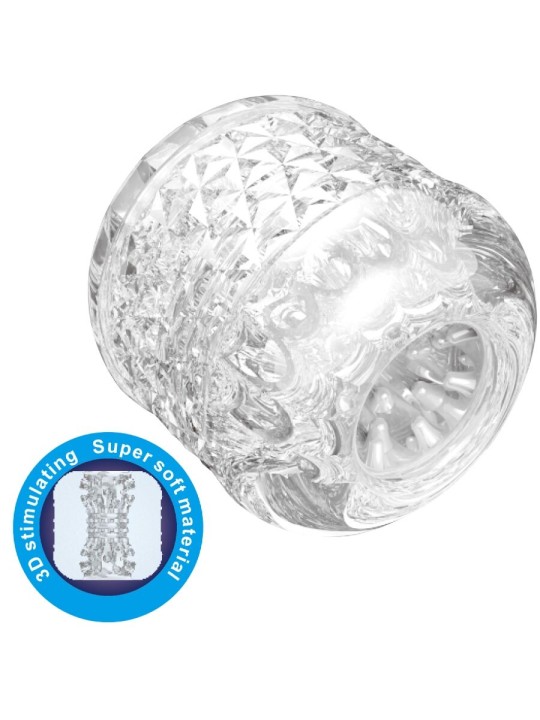 Elegante masturbador manual en color Transparente de calidad inigualable que puede ofrecer una estimulación altamente irresistible.