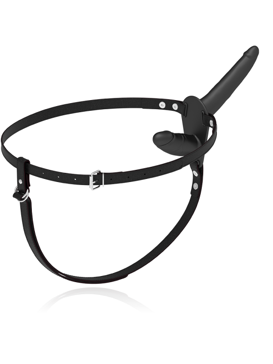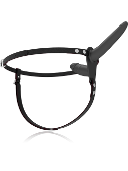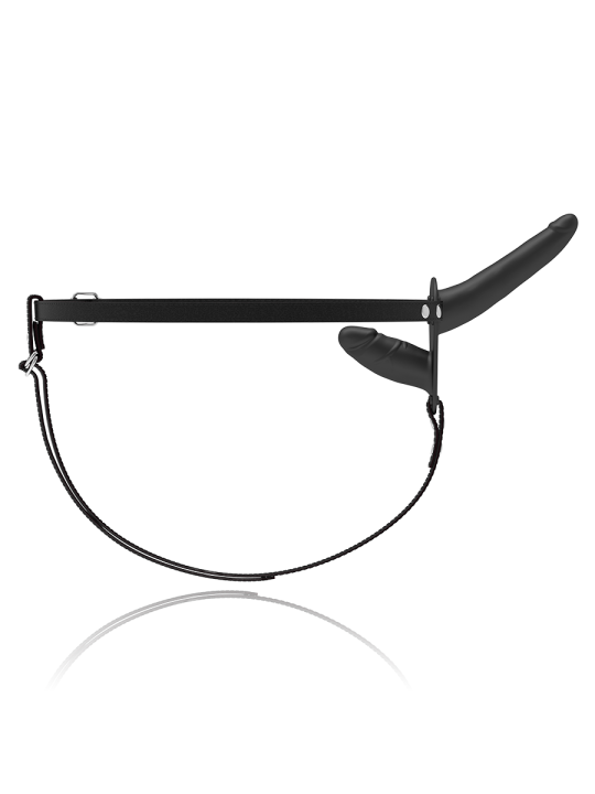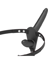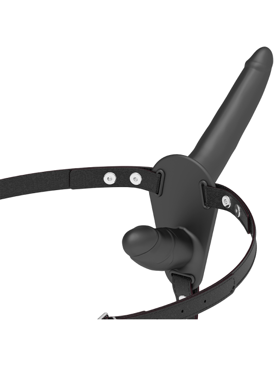 Arnés doble penetración ajustable a cualquier talla de cadera, incluso las más grandes. El dildo está fabricado en silicona de primera calidad.