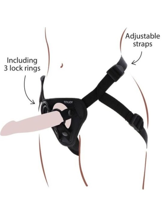 La parte delantera está diseñada con cierres ajustables. Incluye 3 anillos de silicona 3,5 4,5 y 5 cm que te permiten usar tu dildo favorito.