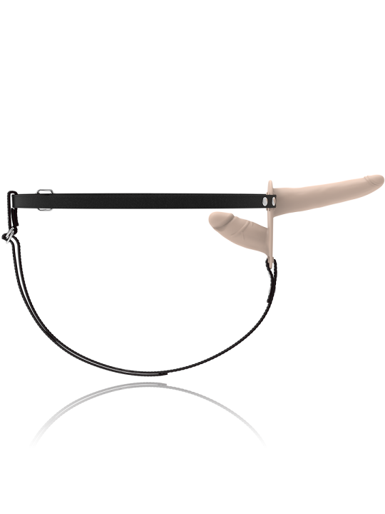 Arnés doble penetración ajustable a cualquier talla de cadera, incluso las más grandes. El dildo está fabricado en silicona de primera calidad.