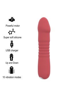 ¡Descubre el vibrador INTENSE - JUNI UP DOWN 10 VIBRACIONES ROJO, diseñado especialmente para mujeres a partir de 18 años! Este innovador juguete está pensado para estimular la vagina con su motor interno que realiza el movimiento de entrar y salir de forma automática. ¡Prepárate para experimentar sensaciones únicas y placenteras!