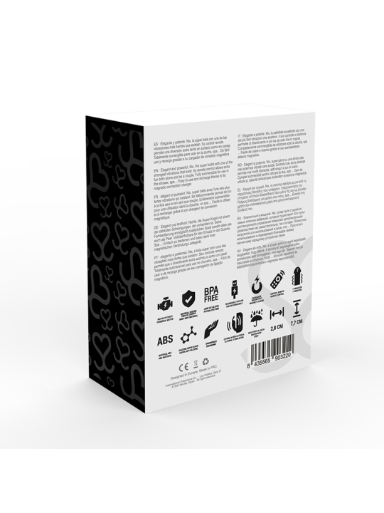 Pequeño, ligero, con su aspecto de atractivo estimulador, Nix es un discreto y moderno vibrador para llevar siempre contigo y del cual disfrutar en cualquier momento.