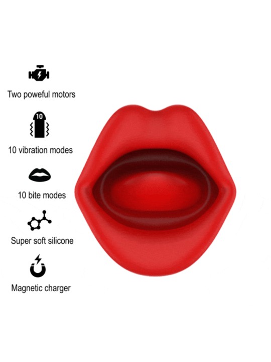 Descubre el arte de la seducción con este estimulador que combina a la perfección diseño vanguardista y tecnología de vanguardia. Suma emoción a tus momentos íntimos y deja que la pasión florezca con cada mordida y vibración de este cautivador juguete en forma de boca.
