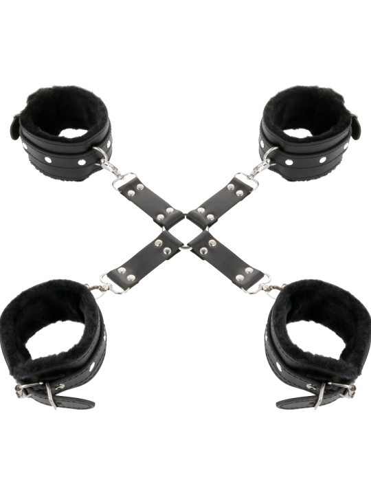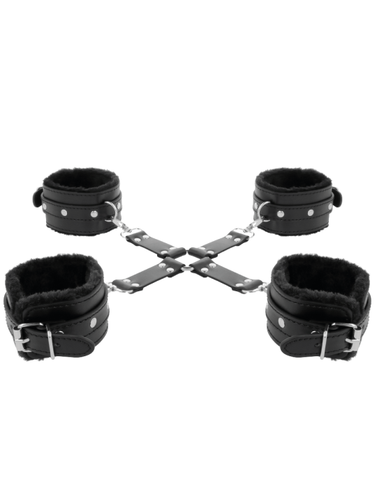 DARKNESS - LEATHER HANDCUFFS FOR FOOT AND HANDS BLACK