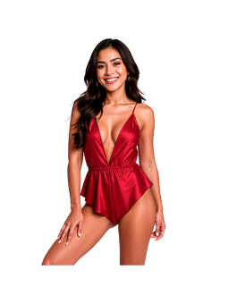 - Estilo: Body satinado con escote en V pronunciado y tirantes cruzados ajustables en la espalda