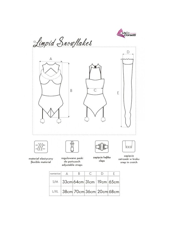 LIVCO CORSETTI FASHION - LIMPID SNOWFLAKES LC 90604 BODY + STOCKINGS + CHRISTMAS HEADBAND L/XL