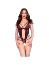 - Elegante teddy de encaje negro y rojo con estampado floral de rosas.