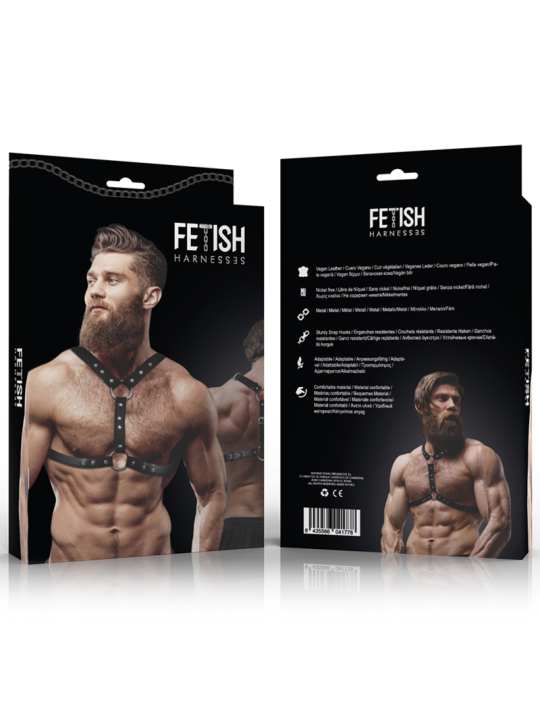 FETISH SUBMISSIVE ATTITUDE - ECO-LEATHER CHEST HARNESS WITH DOUBLE SUPPORT AND STUDS FOR MEN
