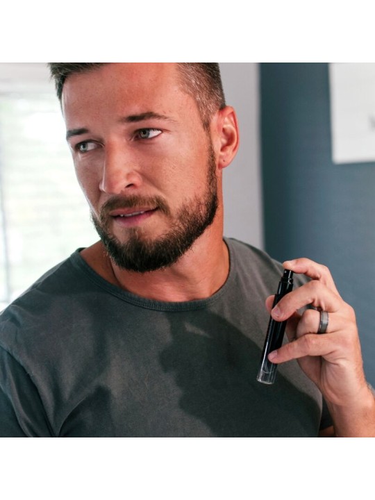 Aplicar en cuello y muñecas y su mayor efecto se encuentra a unos 30 minutos después de su aplicación. Aplicar tantas veces como se desee y es totalmente apto para un uso diario. Viene presentado en un bonito packaging y en un discreto y ligero envase formato viaje de vidrio con vaporizador de 10 ml.