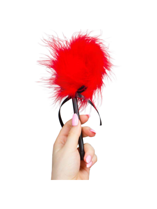 Deja que un cosquilleo recorra todo tu cuerpo con este delicado plumero de marabú rojo.