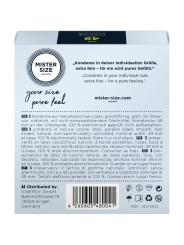 Más sensaciones con su tamaño de condón individual Gracias a MISTER SIZE, los problemas con los condones son cosa del pasado. Una vez que haya encontrado su tamaño ideal y todo se ajuste perfectamente, podrá volver a experimentar la sensación pura del sexo, dejarse llevar y perderse el uno en el otro.